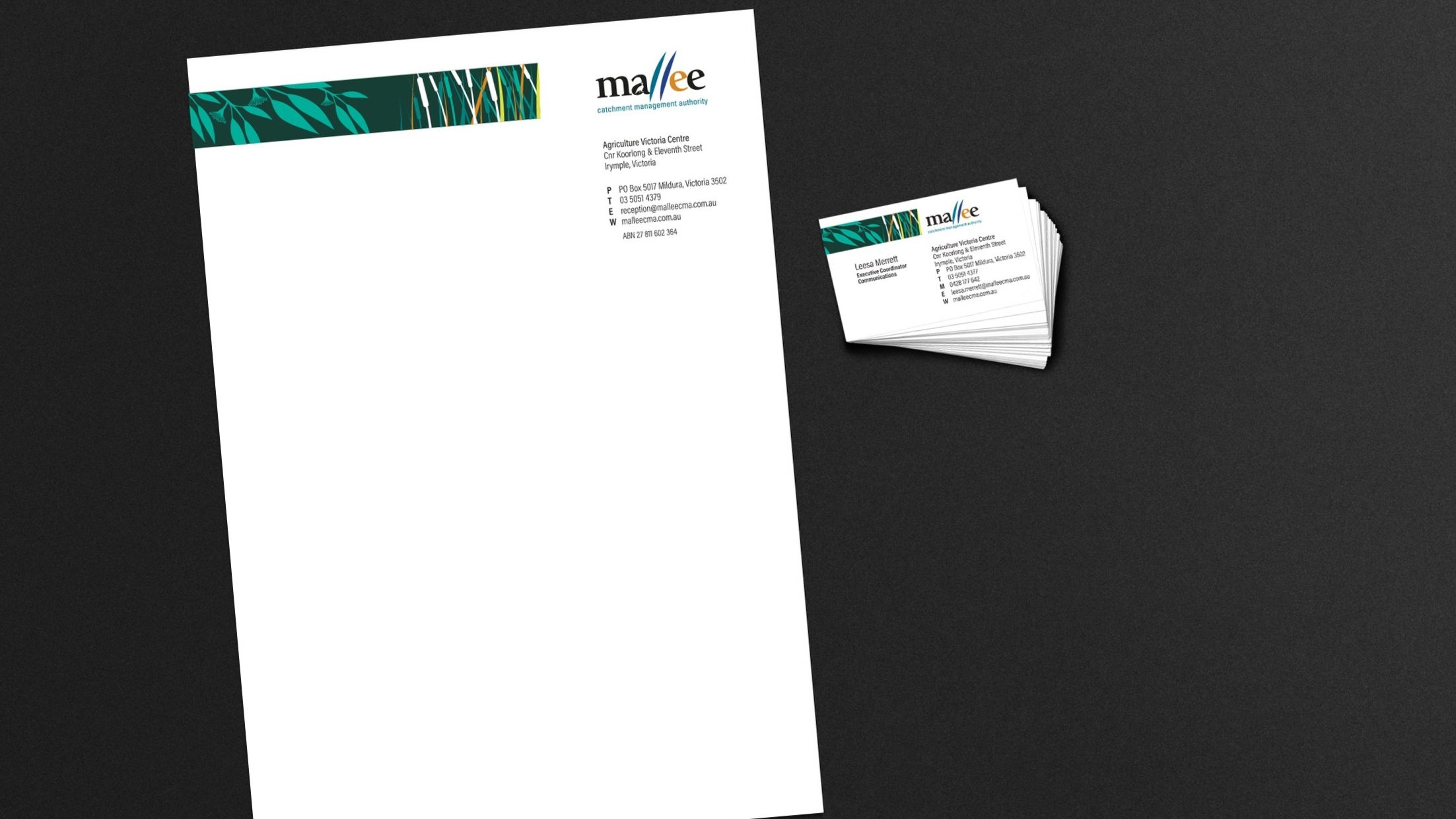 Using the native Mallee blossom, cumbungi reed and bulrushes as inspiration to create a simplified branding element that complements the existing Mallee CMA logo